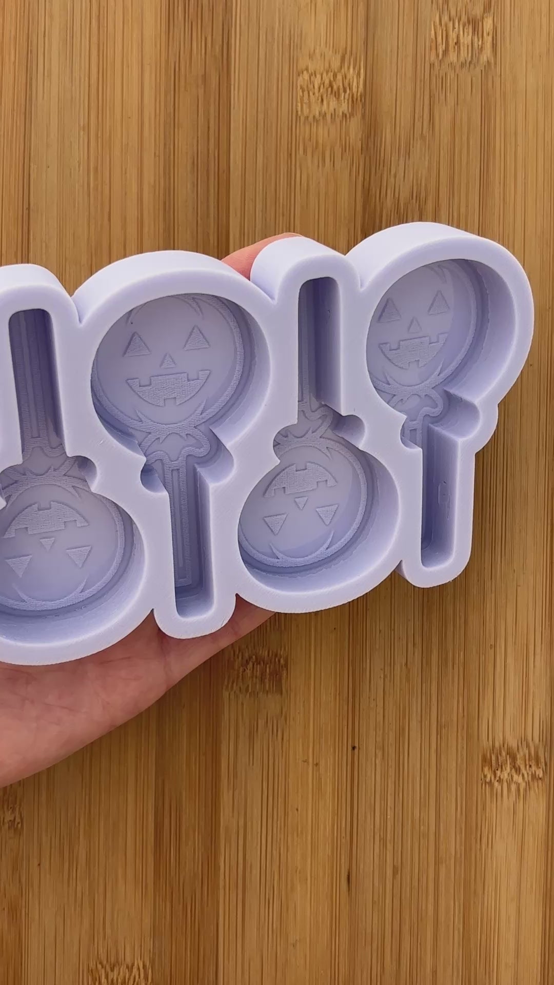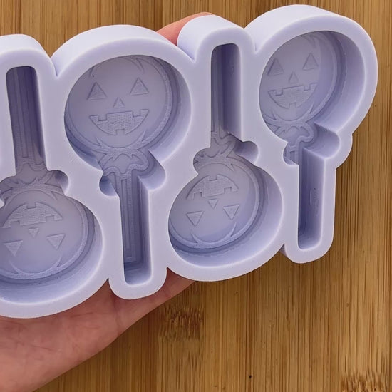 Halloween Sucker Silicone Mold with 4 cavities of 3 inches each, made with Food Safe Silicone suitable for both food and craft projects including resin, polymer clay, chocolate, soap embeds, candle wax, fondant, candy, jewelry making and so much more.