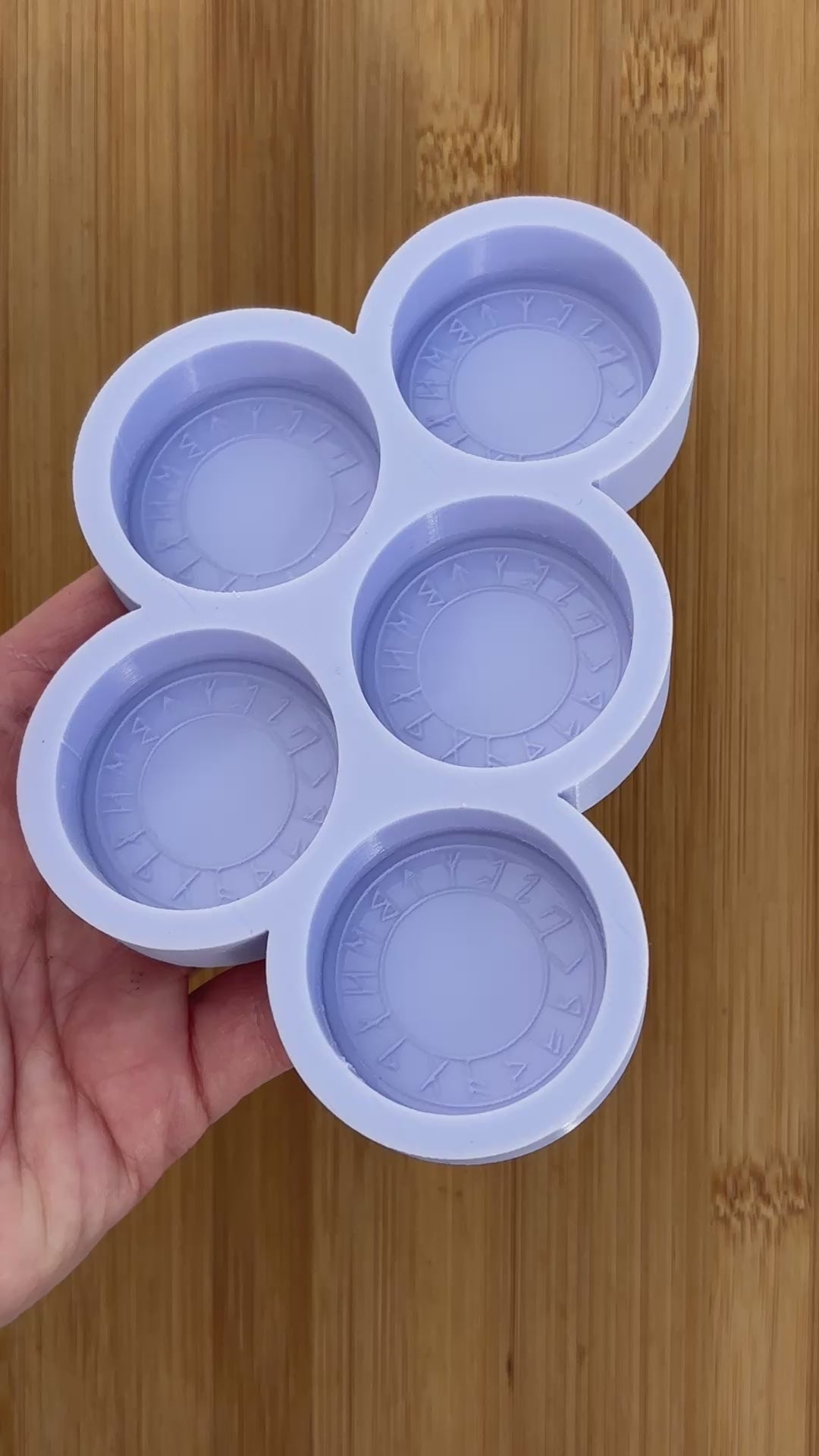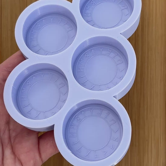 Rune Coin Silicone Mold with 5 cavities of 1.5 inches each, made with Food Safe Silicone suitable for both food and craft projects including resin, polymer clay, chocolate, soap embeds, candle wax, fondant, candy, jewelry making and so much more.