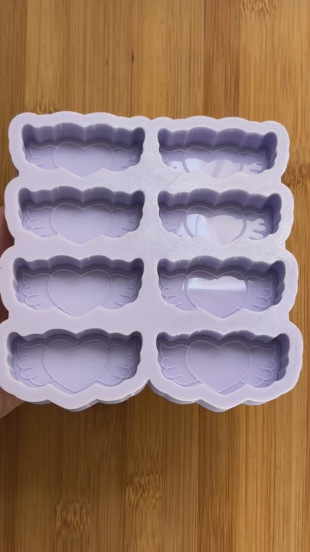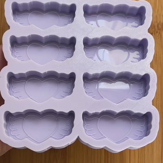 Heart with Wings Silicone Mold with 8 cavities of 2 inches each, made with Food Safe Silicone suitable for both food and craft projects including resin, polymer clay, chocolate, soap embeds, candle wax, fondant, candy, jewelry making and so much more.