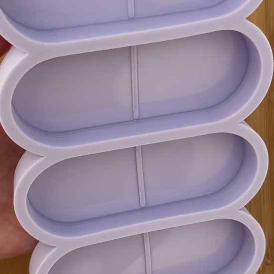 The 4 inch Capsule Silicone Mold has 4 cavities of 4 inches each, made with Food Safe Silicone suitable for both food and craft projects including resin, polymer clay, chocolate, soap embeds, candle wax, fondant, candy, jewelry making and so much more.