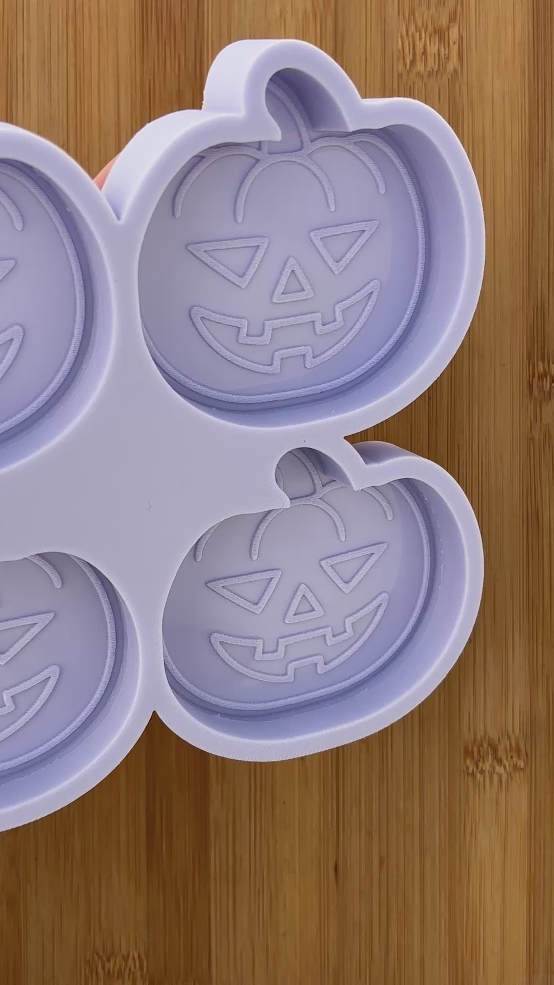 The 3 inch Carved Pumpkin Silicone Mold has 4 cavities of 3 inches each, made with Food Safe Silicone suitable for both food and craft projects including resin, polymer clay, chocolate, soap embeds, candle wax, fondant, candy, jewelry making and so much more.