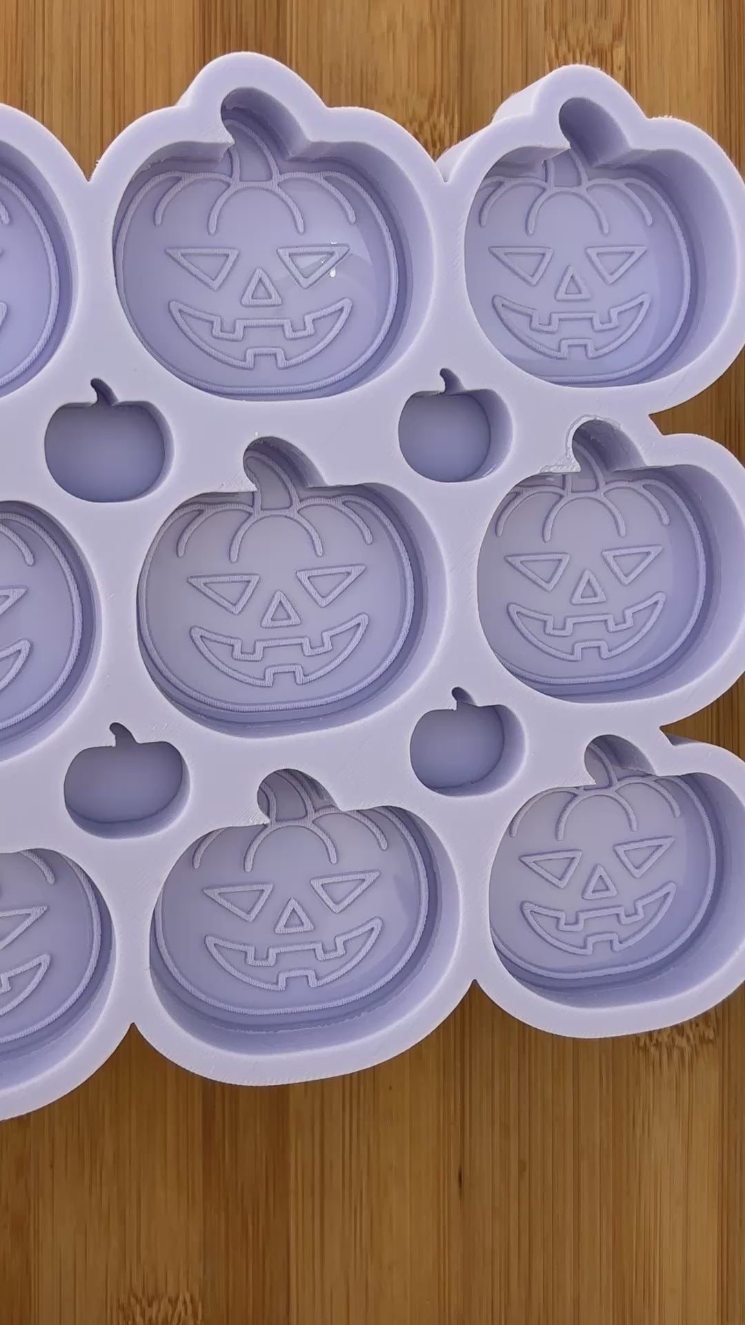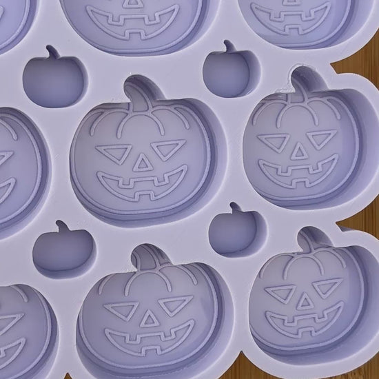 Carved Pumpkin Silicone Mold with 9 cavities of 2 inches each, made with Food Safe Silicone suitable for both food and craft projects including resin, polymer clay, chocolate, soap embeds, candle wax, fondant, candy, jewelry making and so much more.