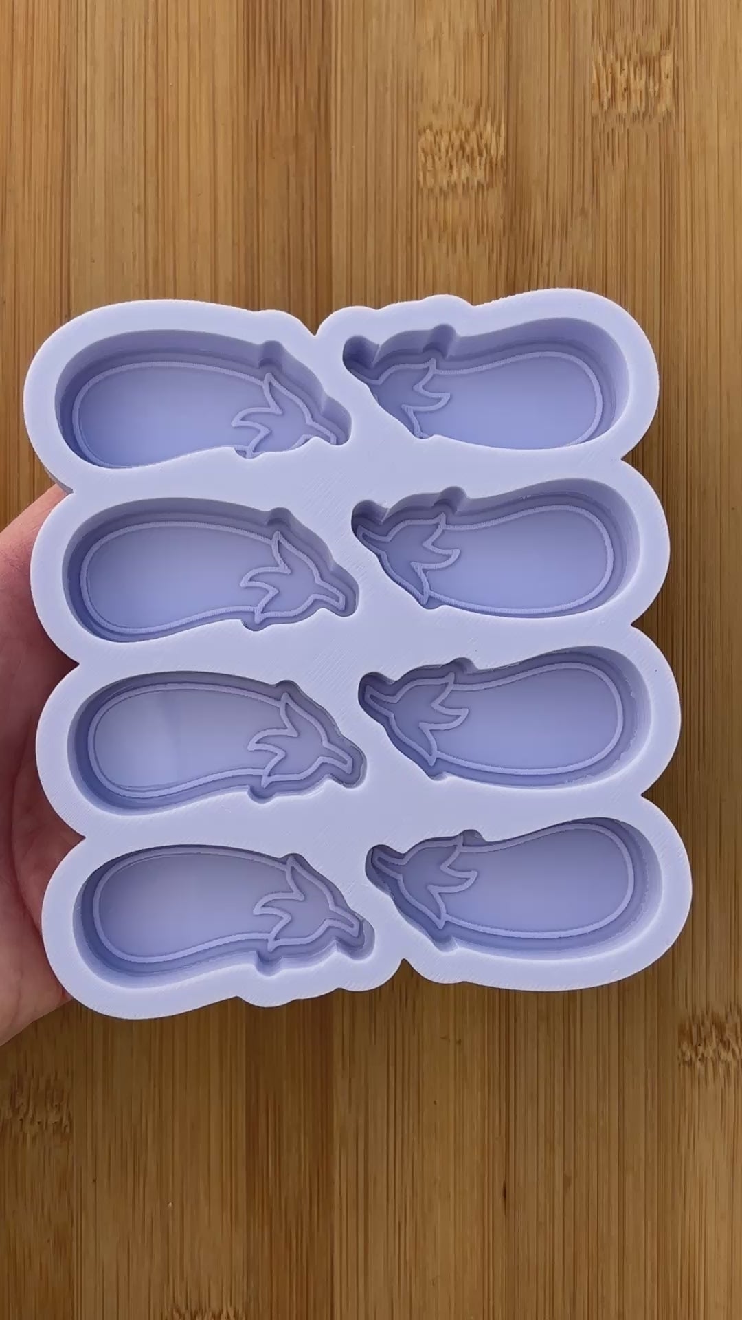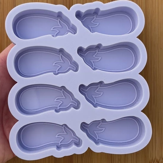 Eggplant Silicone Mold with 8 cavities, made with Food Safe Silicone suitable for both food and craft projects including resin, polymer clay, chocolate, soap embeds, candle wax, fondant, candy, jewelry making and so much more.