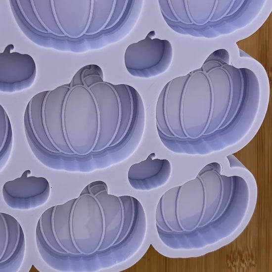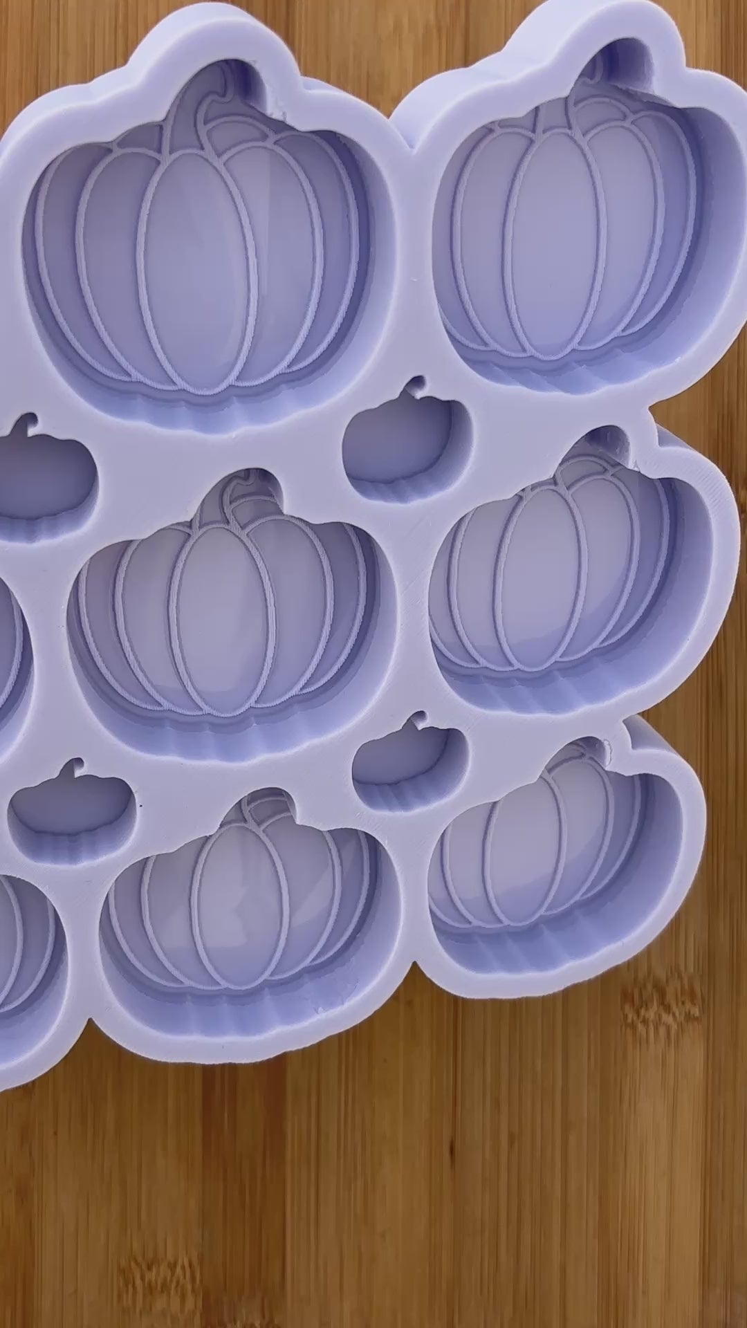 Pumpkin Silicone Mold with 9 cavities of 2 inches each, made with Food Safe Silicone suitable for both food and craft projects including resin, polymer clay, chocolate, soap embeds, candle wax, fondant, candy, jewelry making and so much more.