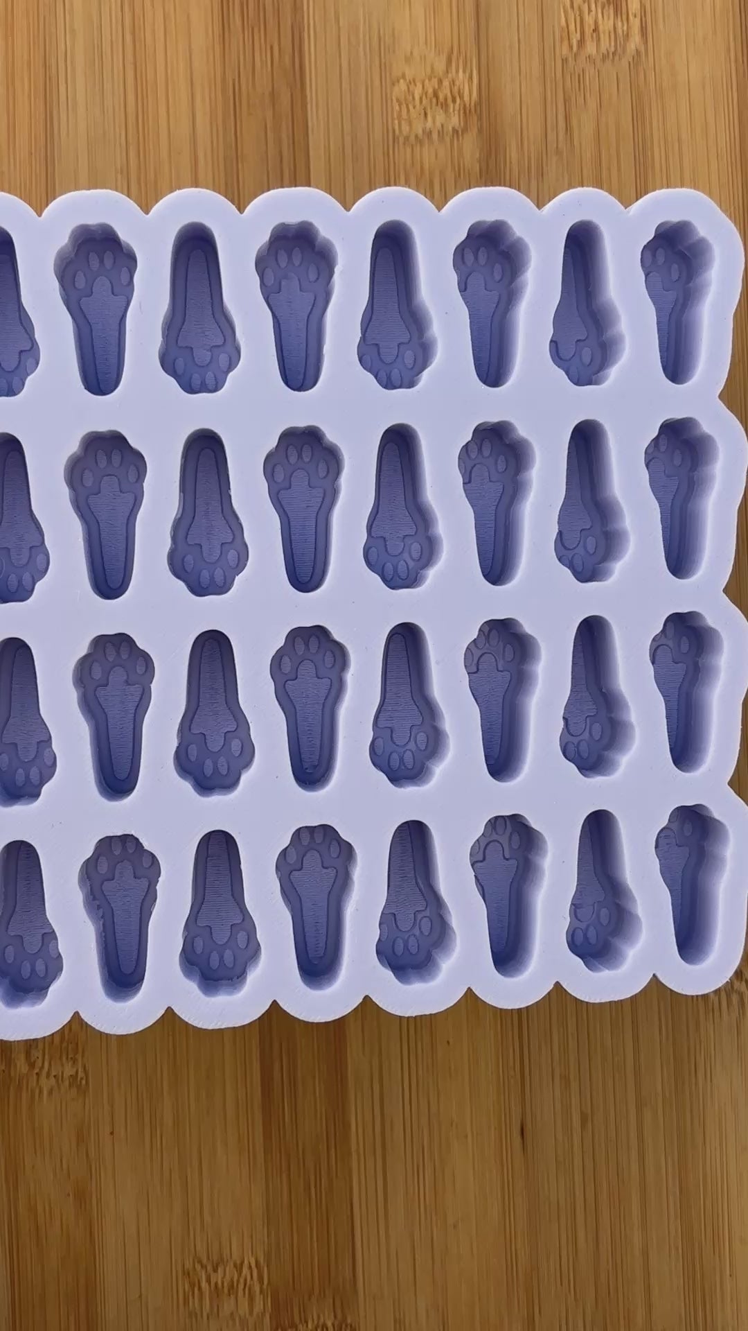 Rabbit Foot Silicone Mold with 32 cavities of 1.1 inches each, made with Food Safe Silicone suitable for both food and craft projects including resin, polymer clay, chocolate, soap embeds, candle wax, fondant, candy, jewelry making and so much more.