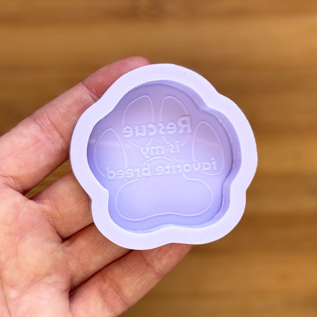 Rescue is my Favorite Breed Silicone Mold with 1 cavity, made with Food Safe Silicone suitable for both food and craft projects including resin, polymer clay, chocolate, soap embeds, candle wax, fondant, candy, jewelry making and so much more.