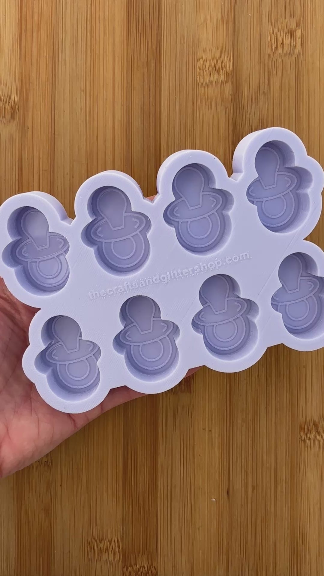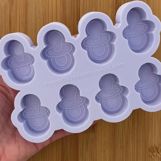 Pacifier Silicone Mold with 8 cavities of 1.5 inches each, made with Food Safe Silicone suitable for both food and craft projects including resin, polymer clay, chocolate, soap embeds, candle wax, fondant, candy, jewelry making and so much more.