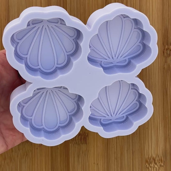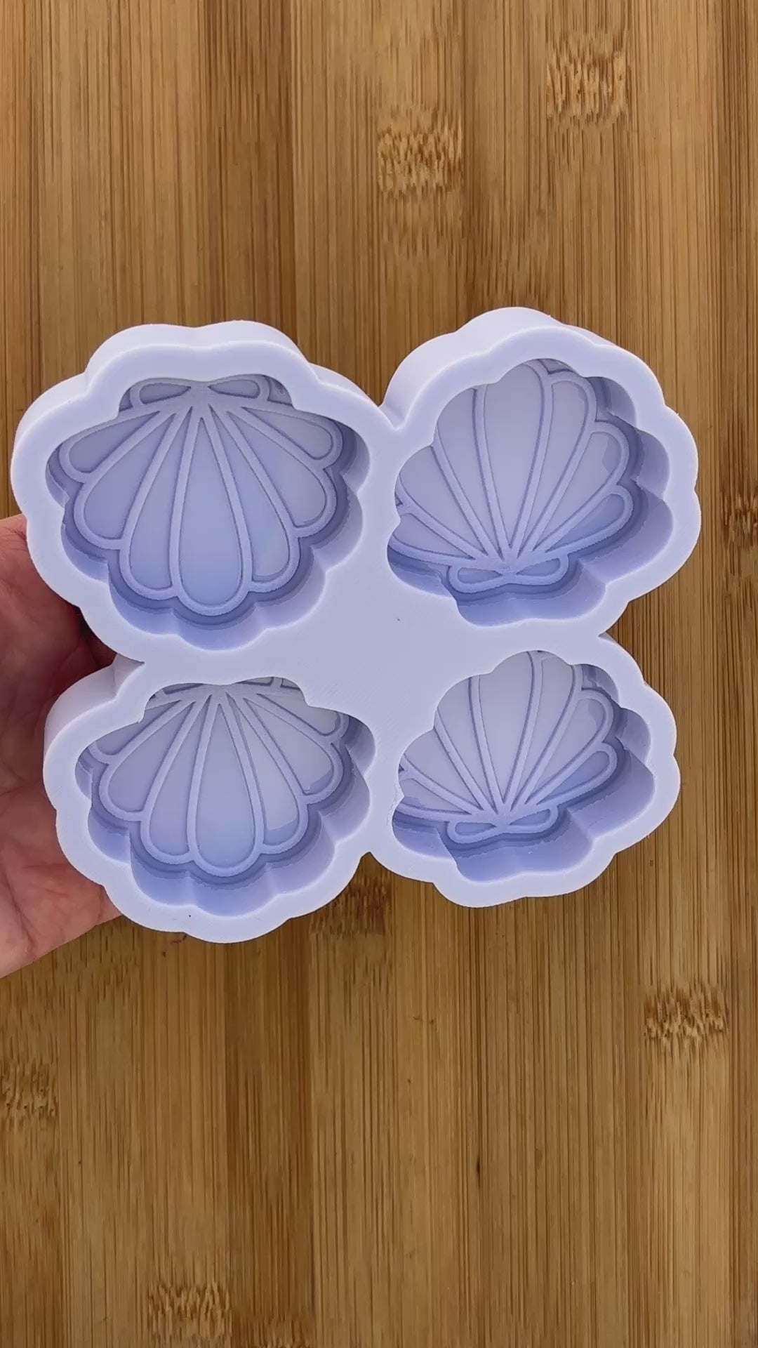 Seashell Silicone Mold with 4 cavities of 2 inches each, made with Food Safe Silicone suitable for both food and craft projects including resin, polymer clay, chocolate, soap embeds, candle wax, fondant, candy, jewelry making and so much more.